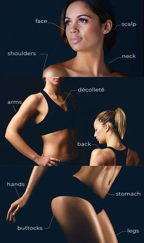 Zaffiro can be used on the face and on many areas of the body, including the neck, décolleté, stomach, back, shoulders, hands, legs and buttocks.